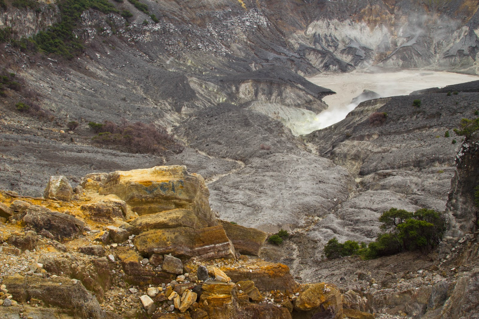 Tangkuban Perahu is an active volcano and has 2048m high, aournd 30km North of Bandung and 5km from previous point Ciater. It has 3 craters, which are: Kawah Ratu or Queen Crater, Domas Crater and Upas Crater. In our exploration, we only going to Queen crater, the biggest one.